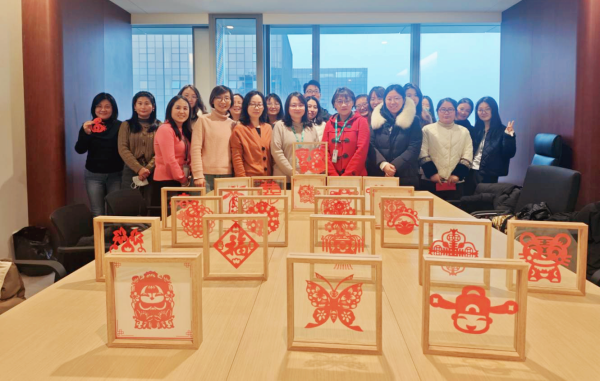 其次,通過(guò)剪紙活動(dòng),大家相互學(xué)習(xí)、交流探討剪紙技巧,進(jìn)一步培養(yǎng)團(tuán)隊(duì)合作能力,提高集體凝聚力。剪紙作品完成后大家交換窗花,以窗花為寄托,互相送出在生活、工作、學(xué)習(xí)等方面的美好祝福。