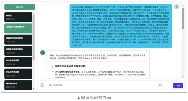 算法凝練構筑知識庫。監測監控公司大數據人工智能研發應用團隊自2023年起在大模型技術與生態環境交叉融合領域持續深耕,積累了扎實的技術能力與豐富的行業知識。在本次服務保障中,團隊迅速組建專項技術攻堅小組,協助參賽選手整理國家與地方標準規范千余份,全面覆蓋監測方法、數據標注、技術指南、核發規范、審查流程等污染源自行監測業務領域。在參賽選手指導下,團隊利用大模型AI能力,對原始規范文本進行關鍵條款提取、內容總結、數據濃縮等技術處理構建專項知識庫,提升信息密度和檢索精準度。