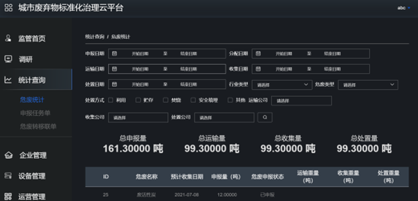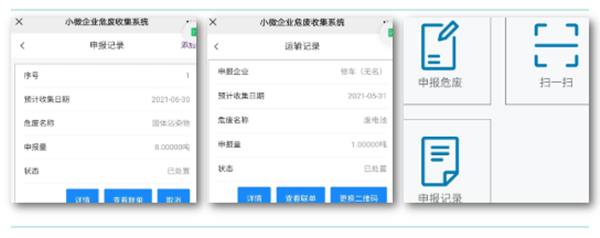過程追溯,精準監管。公司開發危廢收運處一站式服務的信息平臺,依托“物聯網+區塊鏈”技術開發小量產廢企業申報系統,為每一批危廢賦予“身份證”,將產生、轉運、處置各環節有效銜接,全過程追溯、全流程監管,數據同步上傳至管理部門,形成精準化、智慧化的小量產廢企業危廢收運一體化服務體系,幫助小量產廢企業解決收處難題,支撐環境管理部門源頭監管需求,完善危險廢物監管模式,提升危險廢物處置能力。