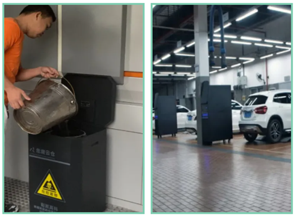 臺賬精細,規范貯存。公司研發可實現數據精準、實時上傳的智能倉儲設備,通過智能稱重和通訊傳感實現電子臺賬和電子聯單的創建,倉儲設備的預處理功能實現危廢源頭分類、減量貯存。為企業節省貯存空間,減少貯存成本,降低環境管理費用。針對汽修行業產生的六大主要危險廢物,配備智能倉儲,廢鉛酸電池、機油濾芯等可實現分類貯存,廢油漆桶、廢機油壺等包裝容器可實現自動破碎、智能減量,廢礦物油可實現安全貯存;針對在線檢測行業產生的檢測廢液,配備50L的智能倉儲,可實現自動生成臺賬報表和轉移聯單,并對設備貯存狀況預警。